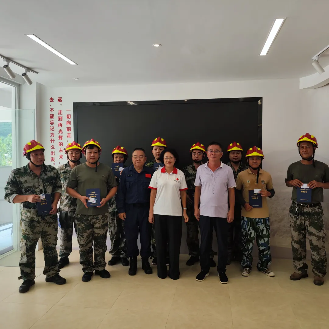培训结束后,三亚市红十字会张华菊常务副会长为通过学习考核合格的学员颁发了“社区应急救援第一响应人”培训证书和红十字救护员证,并为新成立的立才社区红十字应急响应队授队旗。