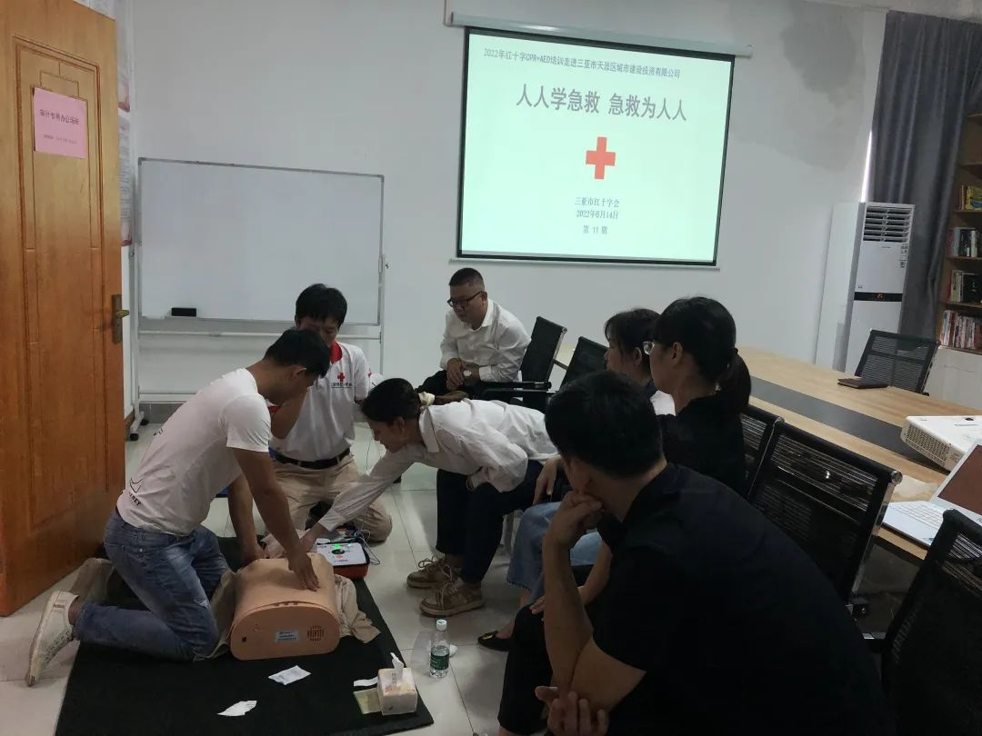 6月13日-16日,在市直属机关工作委员会和天涯区城投公司分别开展CPR+AED救护培训。